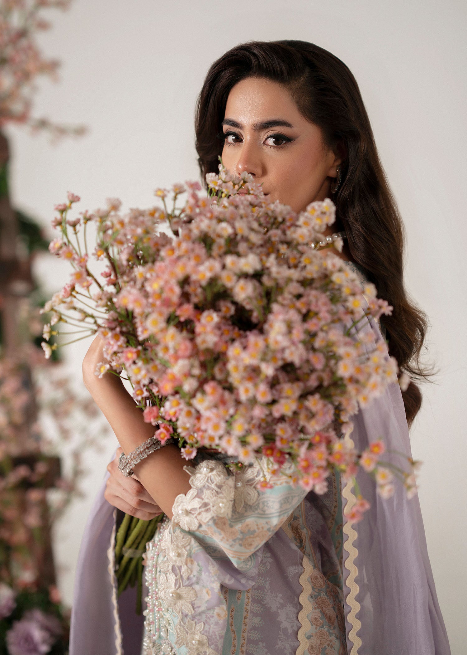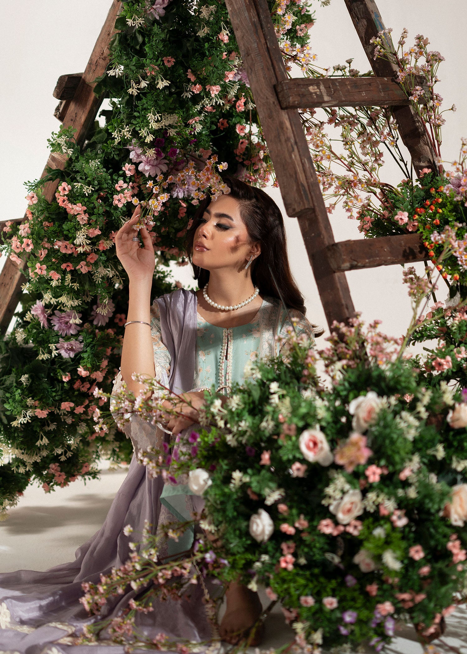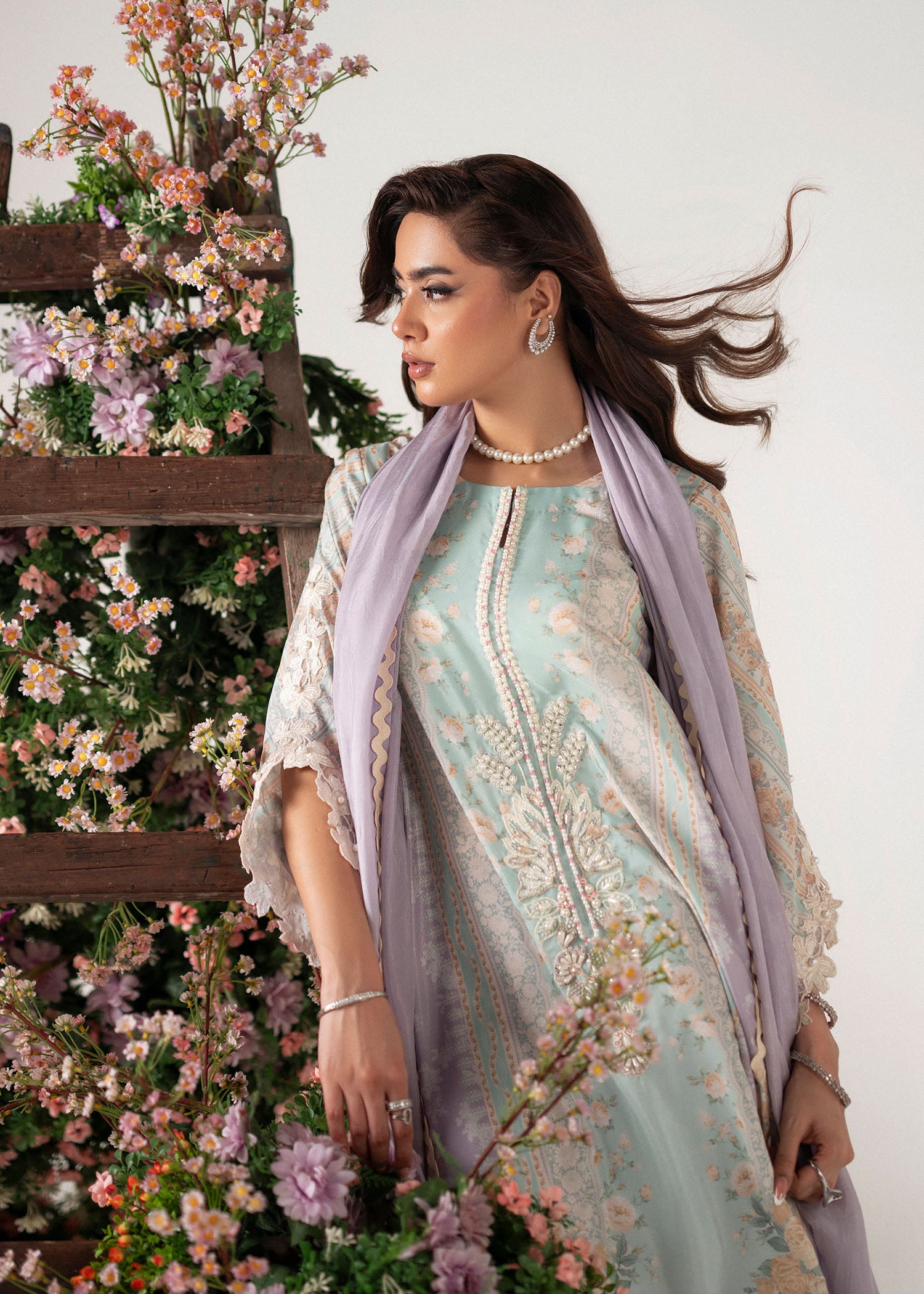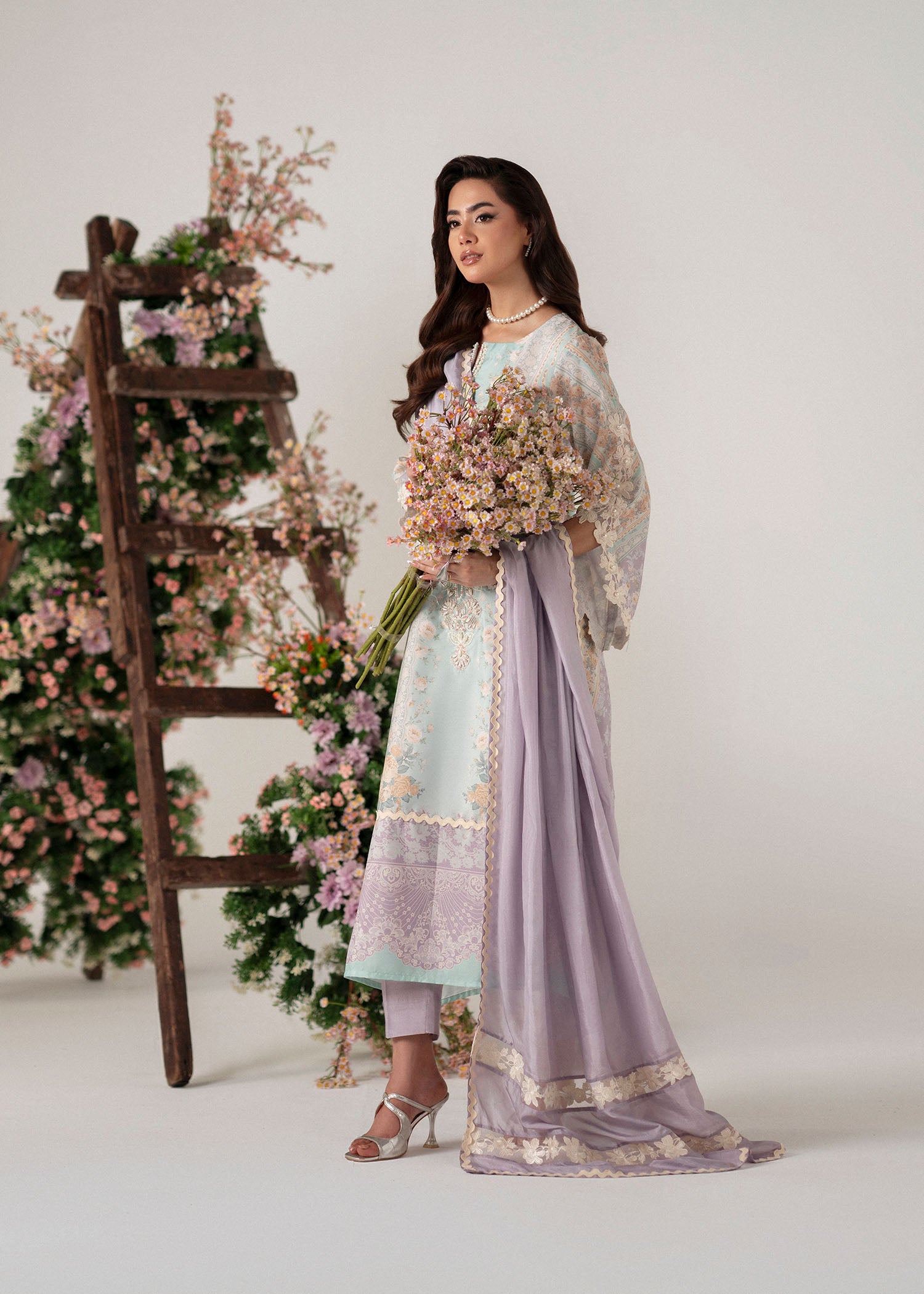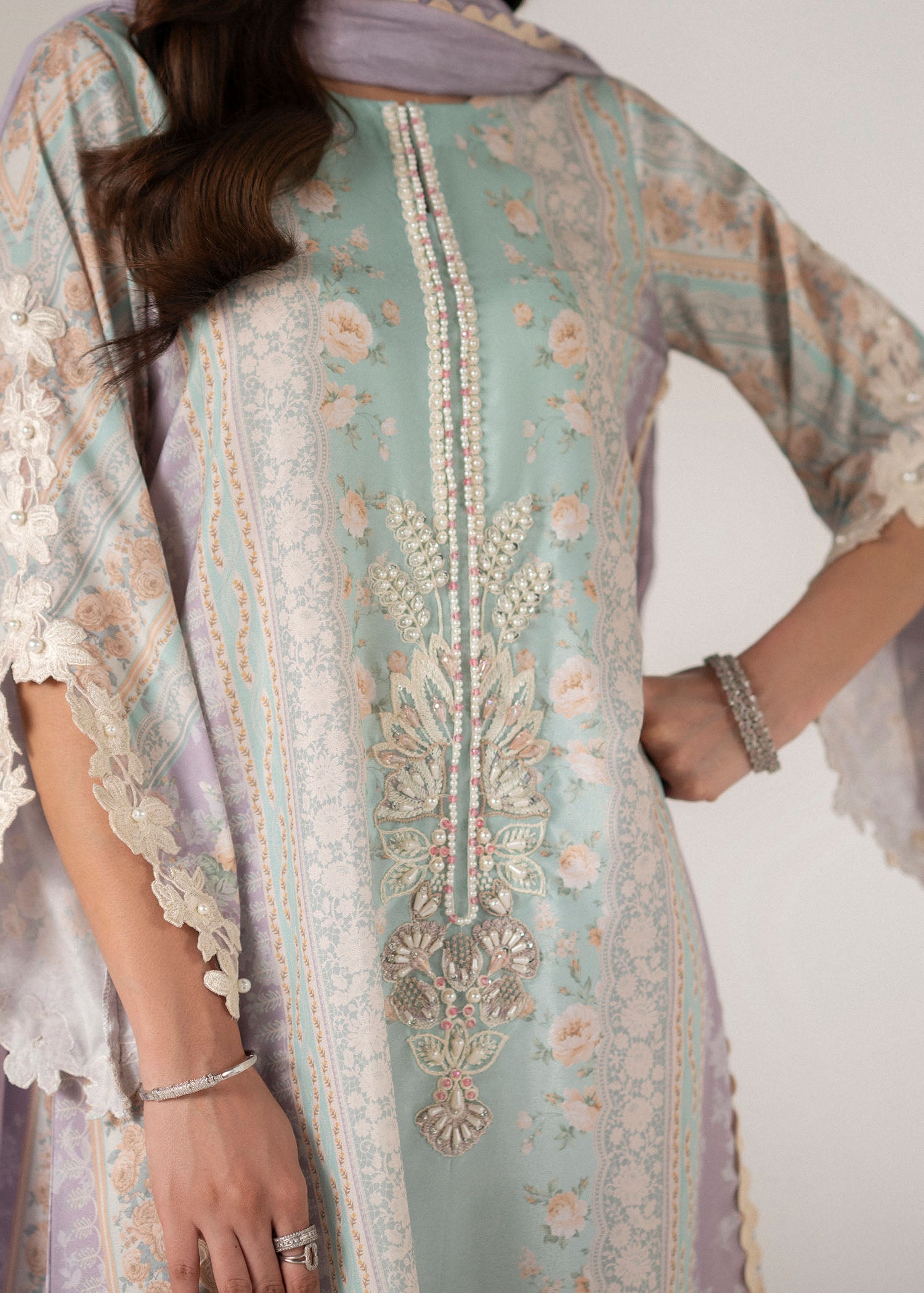 A poetic blend of modern elegance and floral charm, Roselle captures the spirit of understated sophistication. The outfit features a composed print in soothing shades of lilac and mint, evoking a soft, dreamy palette perfect for refined tastes.